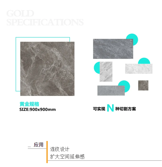 900x900mm規(guī)格可謂方正瓷磚界的一股清流,堪稱“切割黃金規(guī)格”,它既保留了方正規(guī)格的優(yōu)勢,亦能通過簡單切割,得到多種常規(guī)規(guī)格的瓷磚,滿足百變個性的家居設計需求。