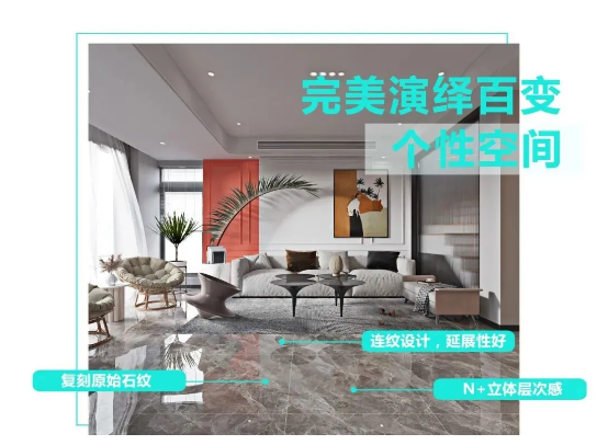 用產品與新生代群體溝通,冠強陶瓷全新打造年輕潮品——NEO系列900x900mm連紋大理石,顛覆傳統(tǒng)瓷磚規(guī)格局限,以經典色系、連紋設計等元素塑造家居生命力和創(chuàng)造力,讓空間更具年輕活力。