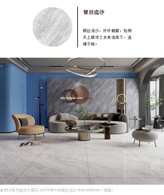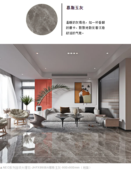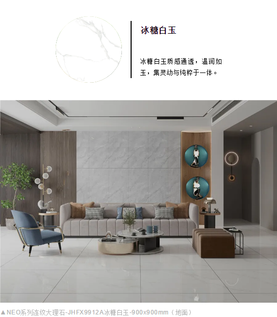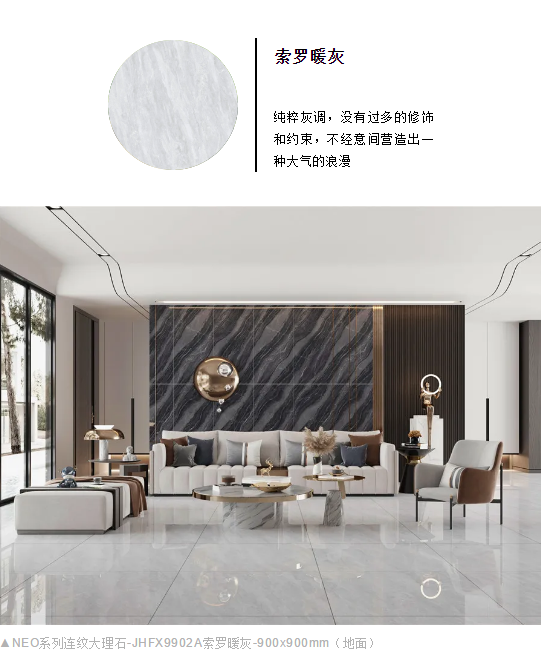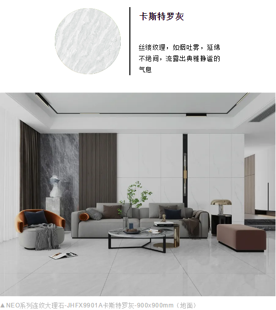 NEO系列900x900mm連紋大理石打破規(guī)格壁壘創(chuàng)新,從不設限。
