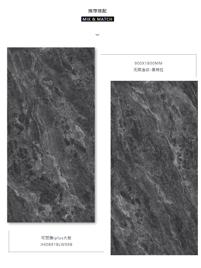 無論是作為居家裝修或是商業應用,900X1800MM大規格瓷磚上墻,因單片面積更大,花色、紋理印花展現更加豐富且飽滿,呈現出來的視覺效果更加立體。