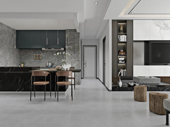 黑白灰,帶著與生俱來的藝術范。以天凈沙大面積鋪貼地面,無需過多顏色來協調,便可將空間品味上升一個高度。