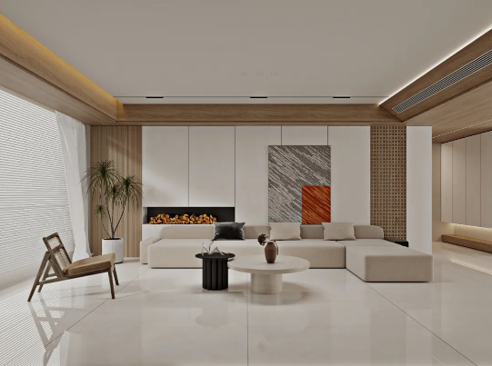 無論身處哪個季節,暖色調瓷磚總能為家定下溫暖恬適的基調。塞納淺啡簡潔明快的米色系搭配木質家具元素,不僅組合出富有親和力的客廳空間,簡約大氣的氛圍中還透露著悠閑自在的生活態度。