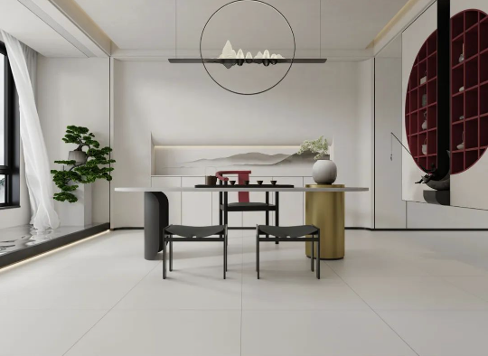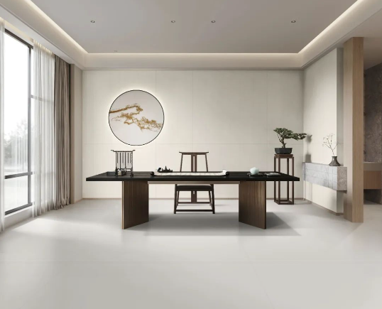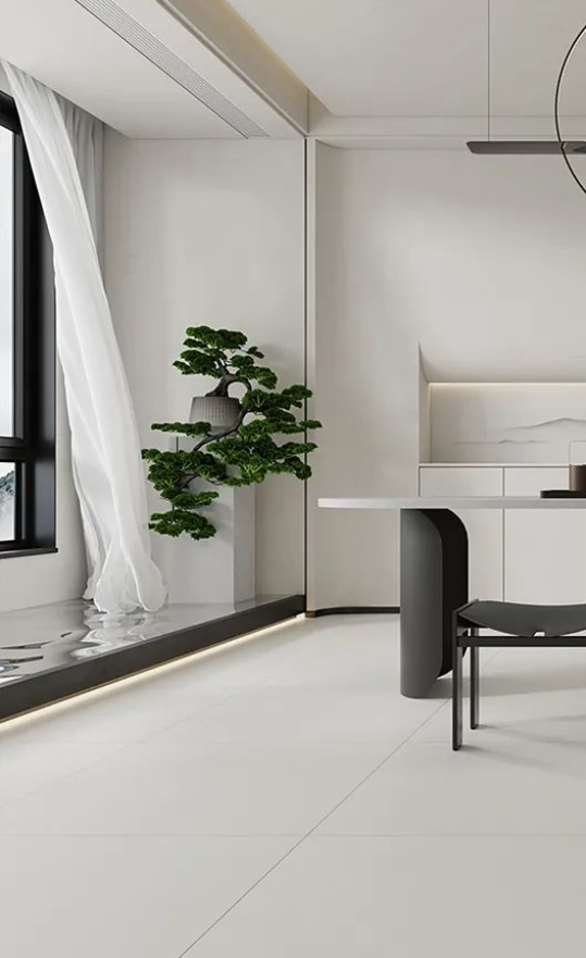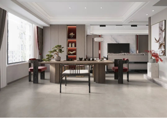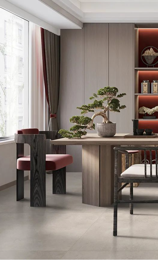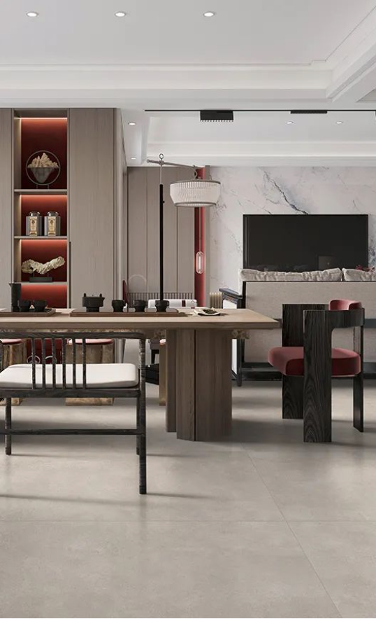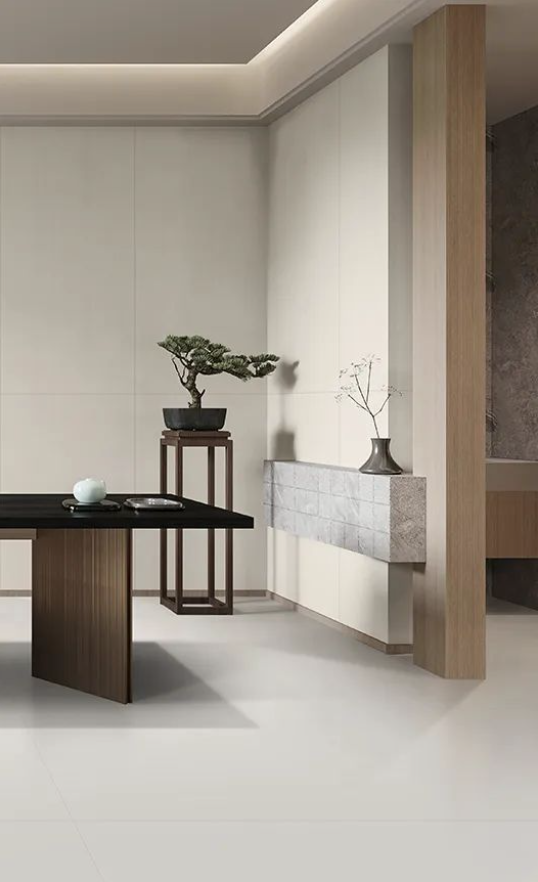 如同回歸大自然清新脫俗的木紋縱橫交錯,搭配宋素|凡古磚肌膚釉工藝自帶的8°柔光,在方寸之間展現簡潔、大方,暖灰色系結合恣意流暢的紋理,在光線渲染下,如朦朧月色裝飾空間,深邃而又浩渺,讓家中再現溫馨回憶。